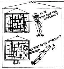 . . . can be a fool’s errand. An essential characteristic of visual art is SILENCE. Looking and seeing may inspire words, but word-shaped ideas and a painting’s raw presence are the difference between telling and showing. To ask what an abstract painting means is to make a category error. Ad Reinhardt put it this way: